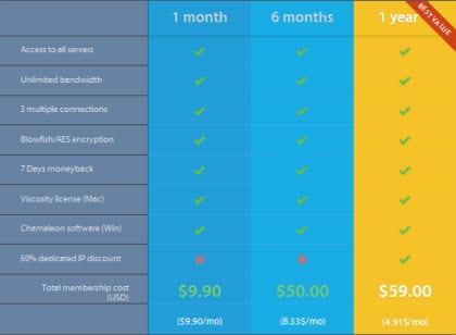 一键点击,即可连接。内含军用级加密和 5 个 bulletproof VPN 协议。